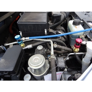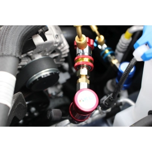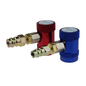 Profesjonalna szybkozłączka wysokiego ciśnienia do klimatyzacji samochodowej na czynnik R134a typu Parker tzn. nie da się wypiąć szybkozłączki dopóki nie odkręcimy pokrętła.