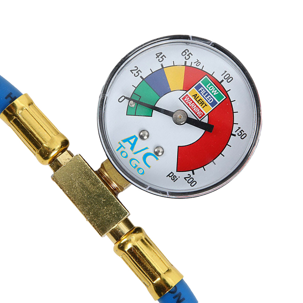 W zestawię znajduje się przewód do napełniania klimatyzacji wraz z szybko-złączem niskiego ciśnienia. W układzie klimatyzacji zazwyczaj występują dwa porty do napełniania lecz ze względu na konstrukcje nasz przewód będzie pasował tylko na jeden z nich. Dzięki czemu nie ma obaw że podepniemy go pod nieprawidłowy.